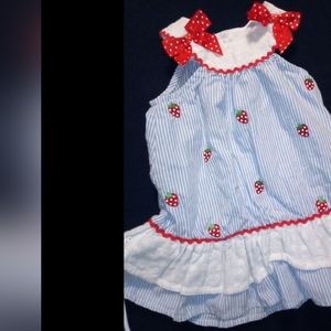 1. striped blue and embroidery strawberry ruffle lace trim bow