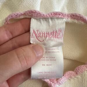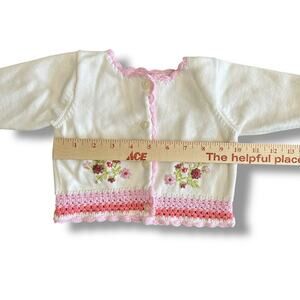 -Nannette Vintage Floral Embroidered Knit Cardigan Babies Size 3/6M Crème Pink
