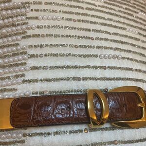 Nanni genuine alligator skin/ solid brass belt, L 34,5 inch