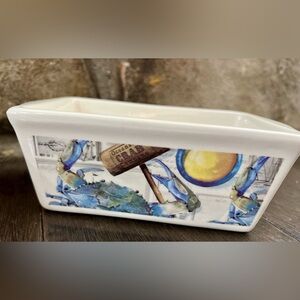 Nantucket Ceramic Blue Crab Mini Loaf Bread Baking Pan, Set of 2