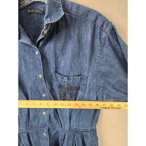 Nantucket Denim Shirt Dress Size 10 Pleated Skirt Long Sleeve Button Front
