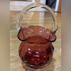 Nantucket Glassworks Cranberry Ruffled Glass Basket