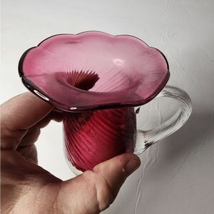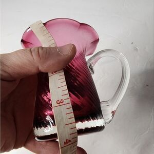 Nantucket Glassworks Cranberry Pitcher Fluted Swirl Clear Ribbed Handle