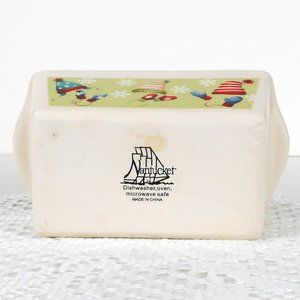 Nantucket Loaf Pan Beige Ceramic Stoneware Mini 5 x 3 In. Hats Mittens Christmas