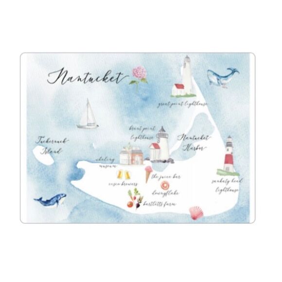 Nantucket watercolor map magnet. 5.5x4”. High quality graphic and strong enough to hold notes and photos. Bundle to get a discount.
