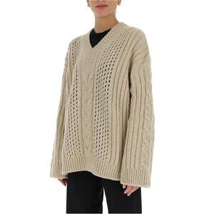 Nanushka Arwan Alpaca Cable Knit Sweater L Beige Cream Oversized
