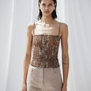 Nanushka Brown Animal Print Smocked Spaghetti Strap Matea Tube Top Party Club