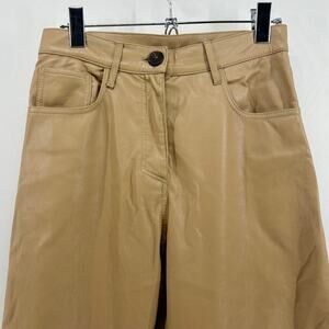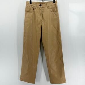 Nanushka Ivy Vegan Leather Trousers in Caramel Straight Leg High Rise