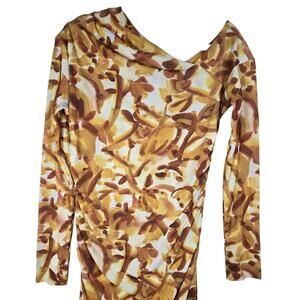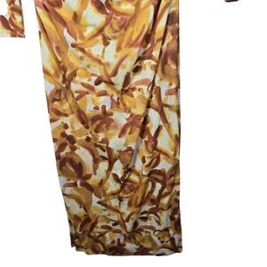 Color/Pattern: Yellow and brown abstract brushstroke/foliage print on a light base