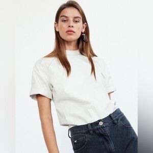Nanushka Kaden Vegan Leather Croc Embossed Tee in Cream S