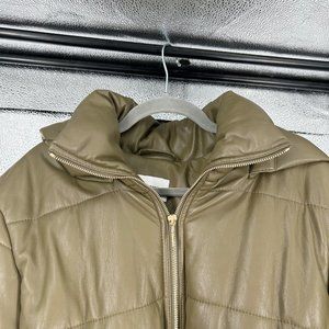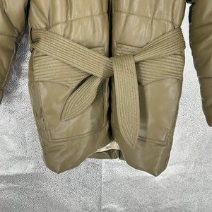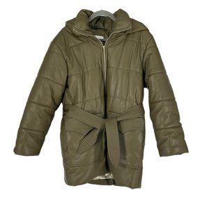Nanushka Lenox Vegan Leather Tie Waist Puffer Coat in Army Green