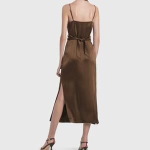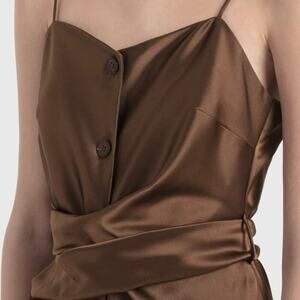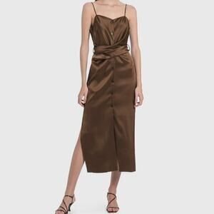 Nanushka Sayan Brown Satin Sleeveless Button Front Midi Dress Medium