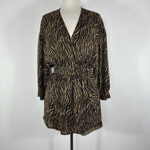 Nanushka Sunset Ballon Sleeve Wrap Mini Romper Tiger Print Size S