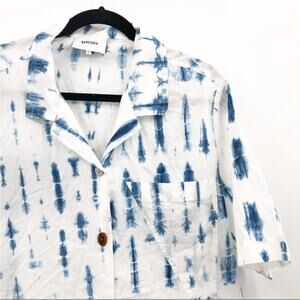 Nanushka Taio Blue Tie Dyed Organic Cotton Poplin Button up Shirt MEDIUM
