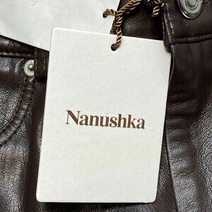 Minimalist and refined, the Nanushka Vinni pants offer an effortlessly polished take on everyday dressing. Crafted in the rich Coffee Ground Brown shade, these straight-leg trousers feature a classic 5-pocket design and clean tailored lines that embody Nanushka’s signature balance of sophistication and ease. Perfect for both casual wear and elevated styling.