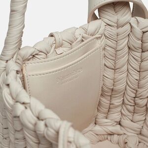 Nanuska the Busket Okobor alt-leather knit bucket bag new with tags in creme (off-white)