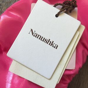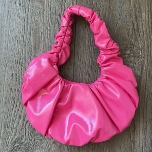 Nanushka Anja Mini Baguette Bag Pink Soft Patent Vegan Leather Gathered Purse
