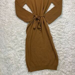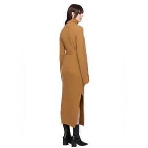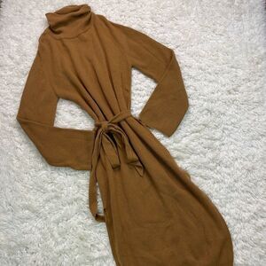 Brand new. In perfect condition. No stains, tears, or flaws. Turtleneck. Tie waist belt. Falls around ankles. Soft and comfortable cashmere blend.