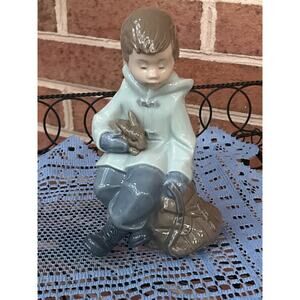 Nao LLADRO: Lladro Boy Holding Rabbit Figurine Bunny Boy Resting on Excursion