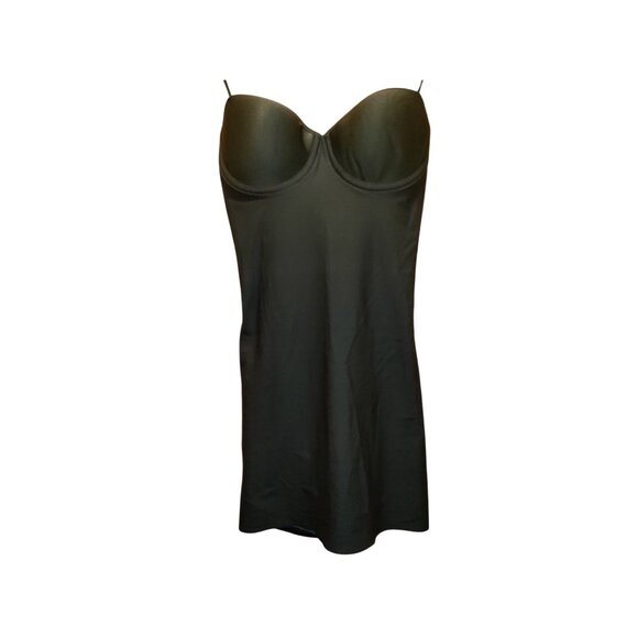 Naomi & Nicole Black Strapless Full Slip Bodysuit*Built-In Bra*38B*Shapewear*EUC
