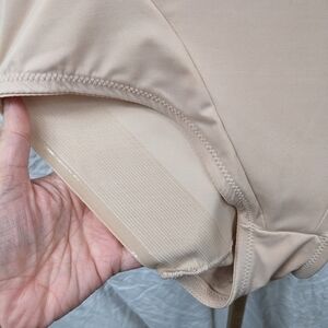 These briefs are in gently used condition. These high-waisted shapewear briefs in a classic tan color. Ideal for a smooth silhouette. Light flaws on front. Please see photos for details.