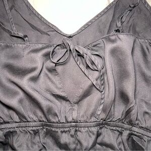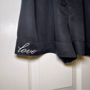 Naomi + Victorias Secret Black Romper Women’s Small. Adjustable Straps, Embroidered Love on right leg, tie key hole close on back and Elastic Waist. 100% Lyocell