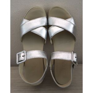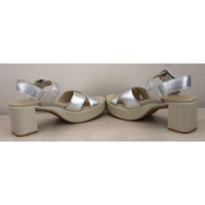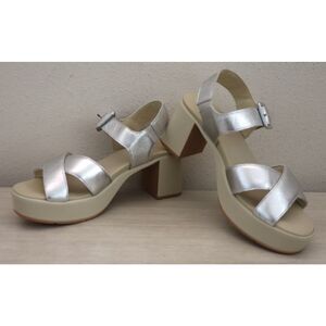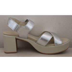 Naot 123102-BA9 Women Sz 39 US 8M Silver Soft Leather Elite Heeled Sandals