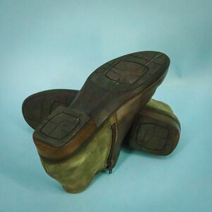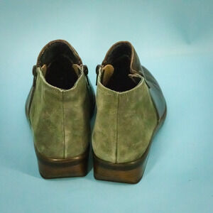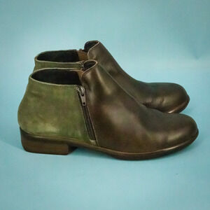 Naot 38 Size 7-7.5 Helm Brown Leather Green Suede Low Double Zip Ankle Boots Booties