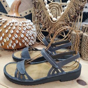 Naot Anika Women's US 10/41 Leather Slingback Sandals in color Gray Comfort Boho Casual Vacation. In very good pre-owned condition with light signs of previous wear. Noted: light spots to both sandals' upper straps (pics # 2,3,4). Please refer to photos (zoom in) for condition, details and size for proper fit. (B2)