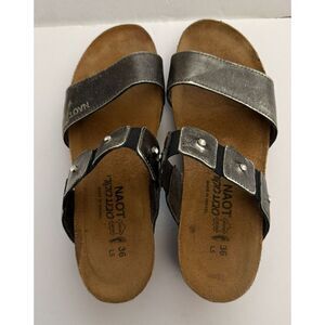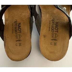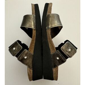 Excellent preowned condition. Ashley sandals by Naot in Metal (a silver bronze gold grey shade with tan detailing). Dressy comfort aesthetic, perfect for vacation, travel or everyday wear any season.