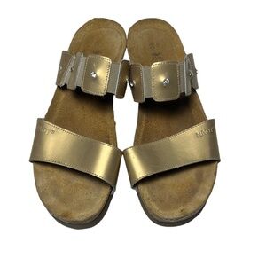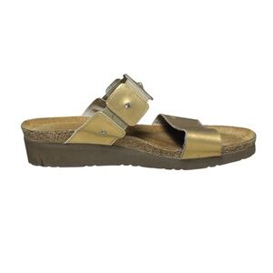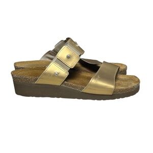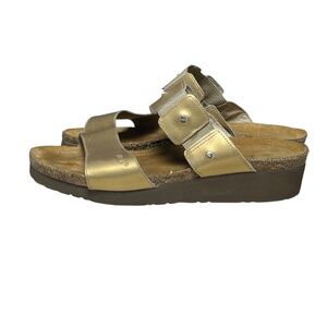 Naot Ashley Sandals Size 39 8 Distress Gold Metallic Leather Wedge 2 Strap Slide