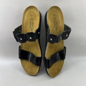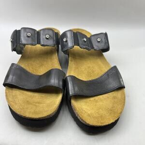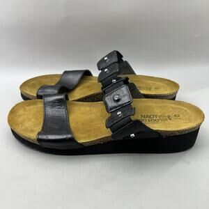Naot Ashley Sandals Women Size 11 Black Leather Slide Wedge Comfort Cork Footbed Shoes