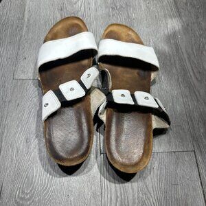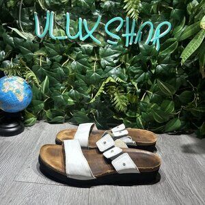 Naot Ashley W Sz EU 42 US 11 Slides Wedge Embellished Leather White Sandals