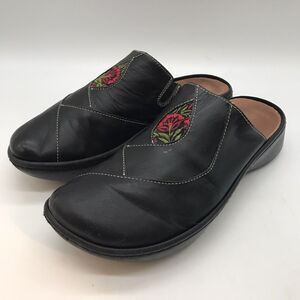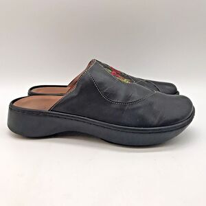 Naot Black Leather Clogs Women's 7 Embroidered Floral Slip On Mules Comfort Shoe