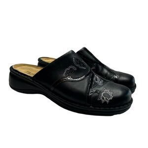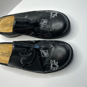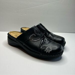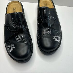 Naot Black Leather Mules 41 Decorative floral embroidered Stitching