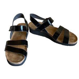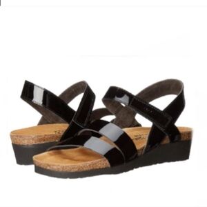 Naot Black Patent Leather Kayla Sandal Wedge Sandals Strappy 5 36