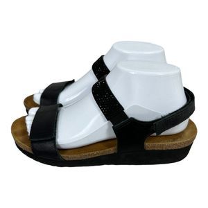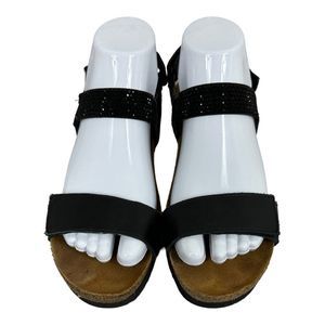Elegant black sandals with a sparkling strap. Ideal for everyday comfort.