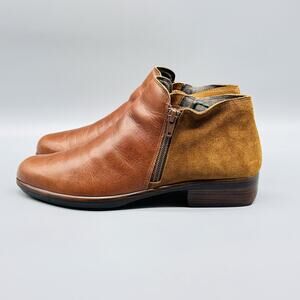 Naot Boots Womens 8 Brown Tan Suede Leather Helm Ankle Side Zip Low Heel Comfort