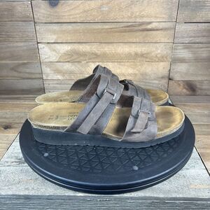 Naot Carly Taupe Nubuck Leather Two Strap Wedge Sandal Womens Sz EU 39 US 8