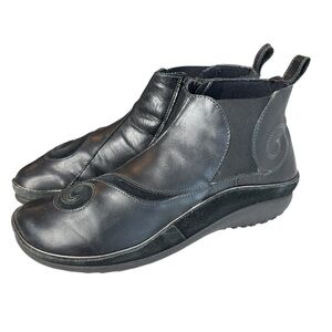 Naot Chi Black Scroll Leather Side Zip Boots Womens US 10 / 10.5 EU 41 MSRP $199