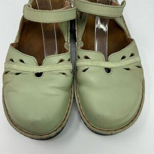 Keywords: Naot sandals, women's slingback, green leather sandals, size 8 sandals, EU 39 shoes, casual spring footwear, flat heel sandals, ankle strap sandals, cushioned insole shoes, buckle closure sandals, pre-owned women's shoes, leather insole sandals, rubber outsole sandals, Israeli made footwear, women's casual sandals.