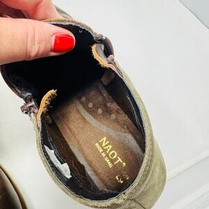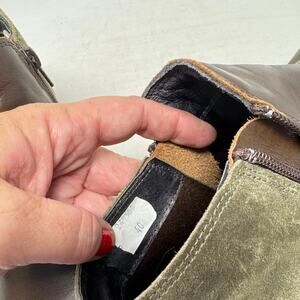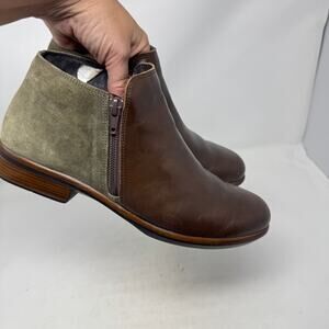 Naot Helm Two-Tone Leather Suede Side Zip Brown Green Ankle Boot Size 40