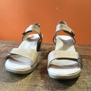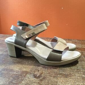 Naot Intact Leather Ankle Strap Heel Sandal Beige Pewter Khaki Womens Size 39 8