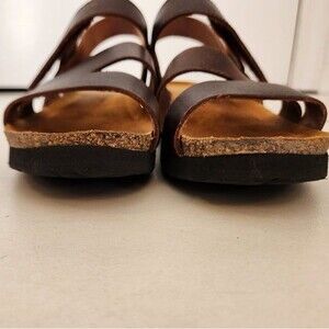 These Naot Kayla Sandals in Buffalo Leather are size 6.5 (37) and were only worn twice. Wedge heel 1.5", .5" platform, 100% leather, cork footbed, arch support. Lightweight, fashion meets comfort. In beautiful like new condition, includes box.