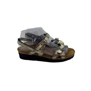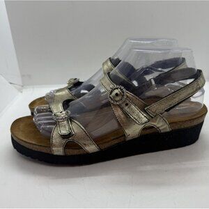 Naot Kelly Brushed Gold Leather Strappy Platform Sandal Sz 39 EU 8 US Rhinestone
