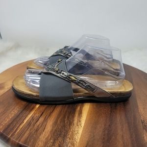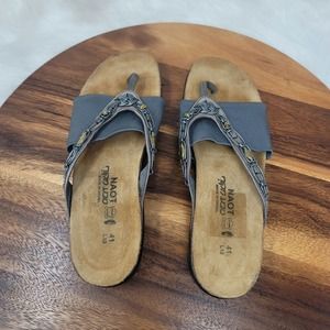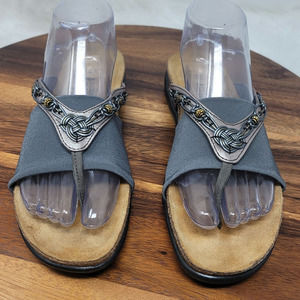 Naot Leather Gray Beaded Slide On Women's Flip Flop 41/10-10.5 Pre-owned and in excellent condition. Bin 6515
