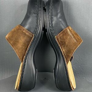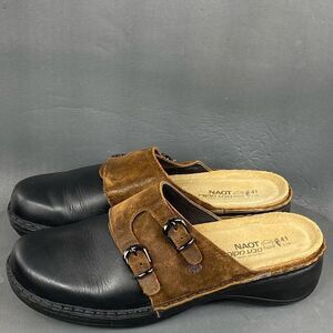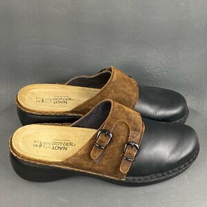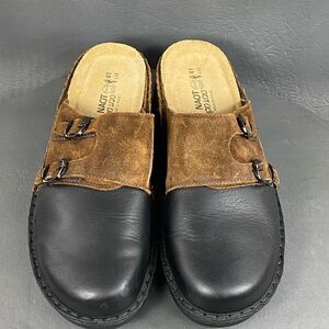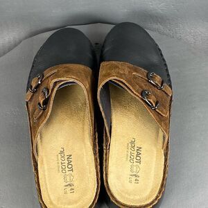 Naot Leilani Women EU 41 US 10.5 Brown Suede Black Leather Buckle Clogs Mule