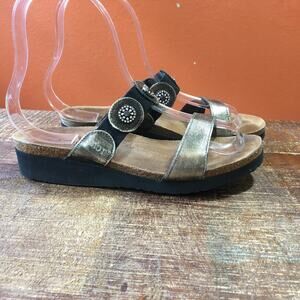 Naot Marissa Slide Sandal Womens 38 7 Gold Metallic Medallion Leather Boho