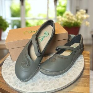 comfort shoes, cork footbed, arch support shoes, orthotic friendly, apma approved, casual flats, leather mary jane, work shoes, travel shoes, teacher shoes, nurse shoes, all day comfort, supportive walking shoes, wide fit mary jane, israel made shoes, new in box, naot comfort, everyday wear, classic style flats, velcro strap shoes, slip resistant, minimalist style