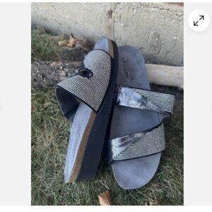 Naot Mila Metallic Onyx Sandal - Size 42 US 11 - Black/ Silver Fast Shipping New